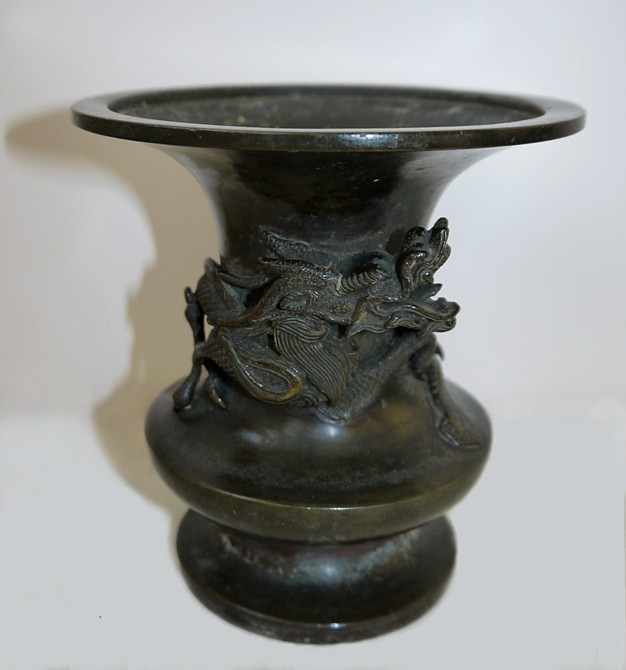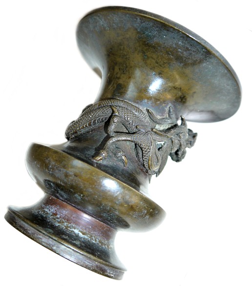 Бронза, гравировка, рельефы, напайка. Подписная работа конца эпохи Эдо,
