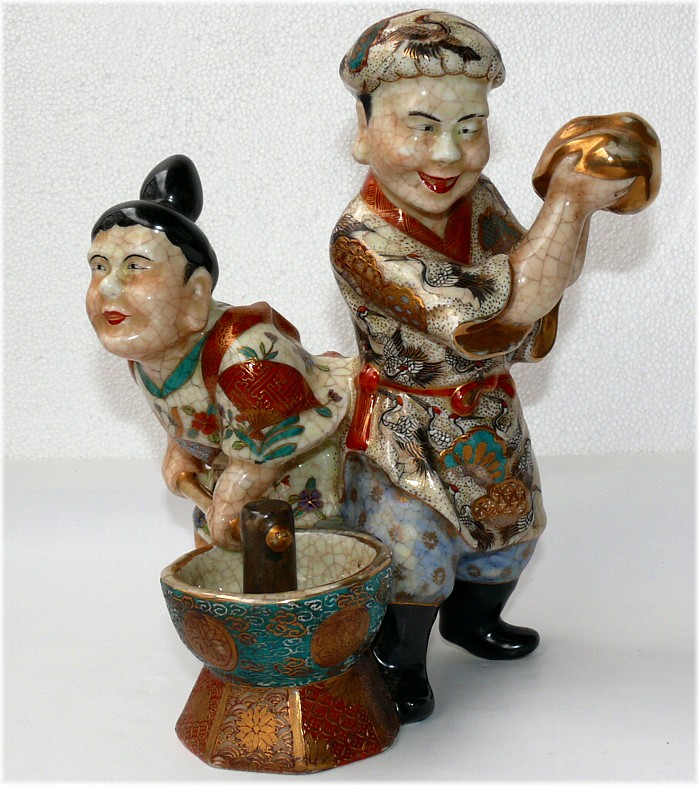 статуэтка, изображающая двух мастеров приготовляющих традиционное японское праздничное