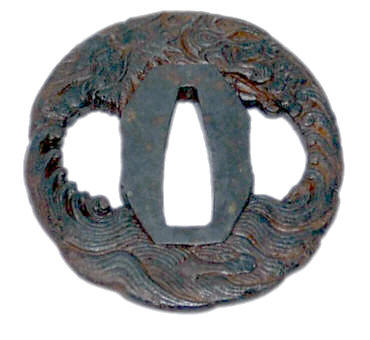 Цуба: железо, ковка полировка, резьба. На поверхности цубы
