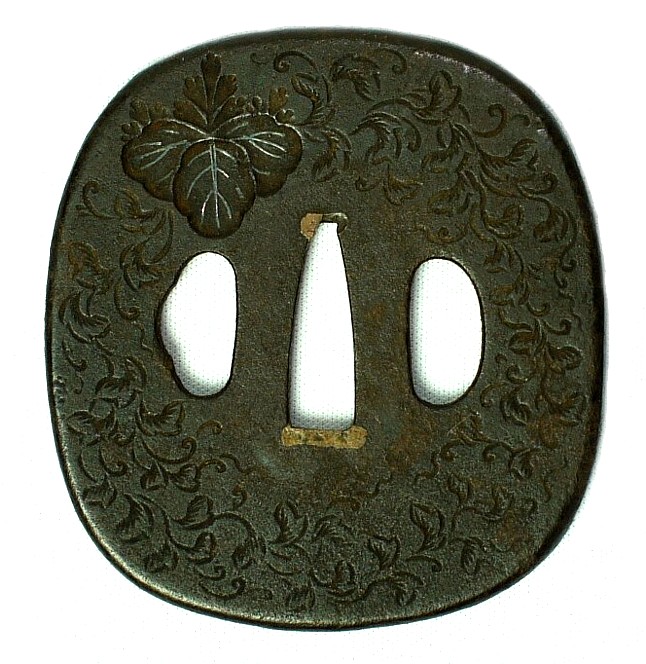Антикварная цуба японского меча с растительным орнаментом