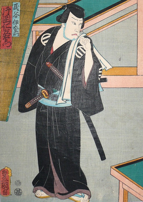 Японская гравюра укиё-э Самурай в черном кимоно, Утагава Кунисада